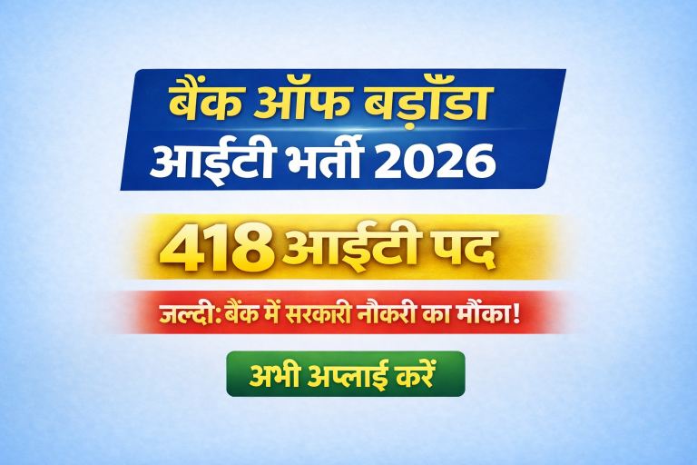 Bank of Baroda IT Recruitment 2026 ka official notification jari ho chuka hai. Is bharti ke tahat 418 regular IT posts par recruitment ki ja rahi hai. Eligible candidates 30 January 2026 se 19 February 2026 tak online apply kar sakte hain.