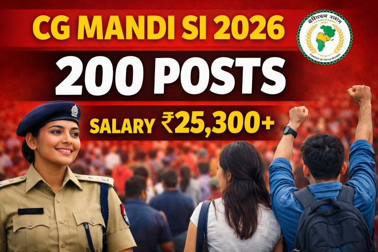 CG Mandi SI Recruitment 2026 छत्तीसगढ़ के युवाओं के लिए एक बेहतरीन मौका है। 200 पदों पर सीधी भर्ती के साथ अच्छा वेतन और स्थायी करियर का अवसर मिल रहा है। पात्र उम्मीदवार समय रहते आवेदन करें और परीक्षा की तैयारी अभी से शुरू कर दें।